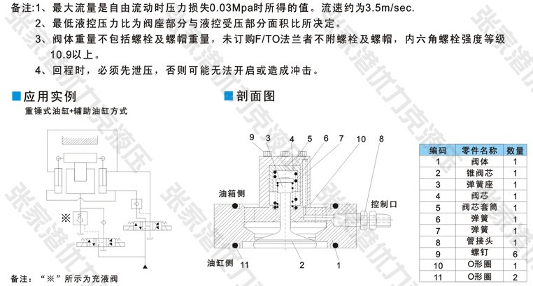 2、液控壓力比為閥座部分與液控受壓部分面積比所決定。